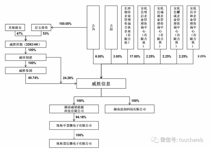 IPO前,吉为直接持有威胜信息6.00%的股份,并通过持有星宝投资100.00%股权间接持有威胜控股53.00%的股份。