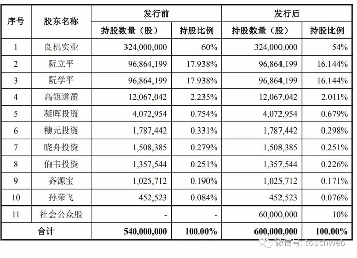 阮立平、阮学平系兄弟关系,两人分别直接持有发行人发行前17.938%股权,合计控制发行人35.876%表决权。阮立平、阮学平分别持有良机实业50%股权,良机实业为发行人控股股东,持有发行人发行前60%股权。