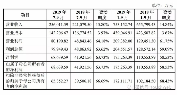 公牛集团2019年前9个月营收为75.31亿元,较2018年同期的65.58亿元增长14.84%;2019年前9个月净利为17.53亿,较上年同期的11亿元增58.53%。