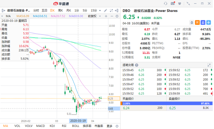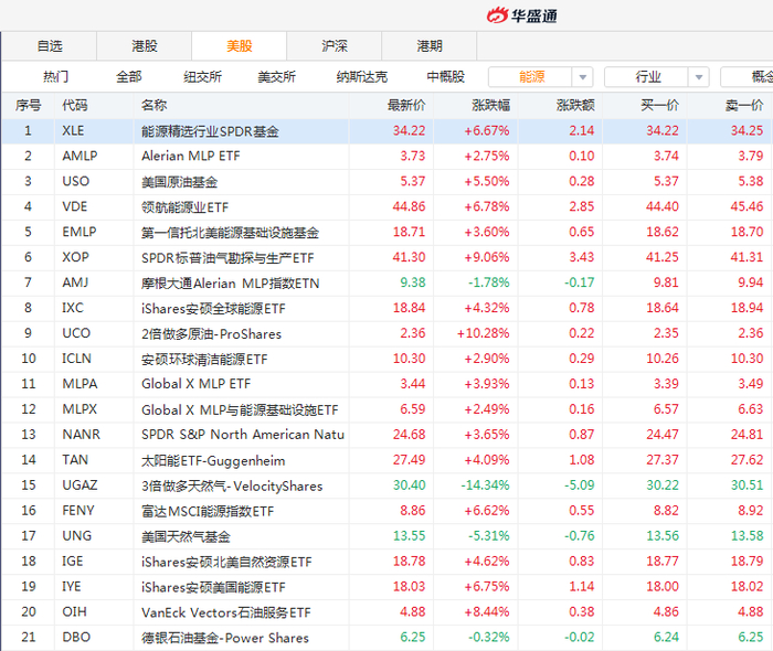 比较常用的2倍做多原油ETF很多都是ProShares旗下的,比如代码为UCO的2倍做多原油-ProShares,对应的2倍做空原油ETF的代码则是SCO,全名2倍做空原油-ProShares。其他还有德银的2倍做空原油-DB(代码DTO)等,都在华盛通的能源类ETF中就可以轻松找到。