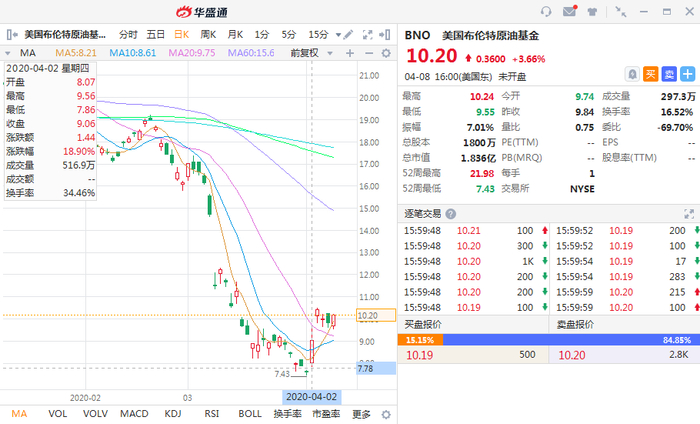 3. 布伦特原油基金(代码BNO)
