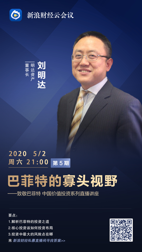 新浪财经讯 5月2日,明达资产董事长刘明达做客新浪财经《私募直播间》,分享主题:巴菲特的寡头视野。他拥有20年的证券投资经验,国内阳光私募基金领域的拓荒者,是内地公认的最成功的私募基金经理之一。他曾参加过2010年巴菲特股东大会,与股神交谈过2个多小时,让我们面对面来倾听他的投资经,听他对价值投资的理解。>>查看视频直播