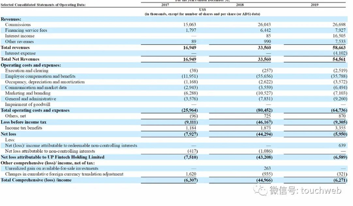 这是老虎证券上市后首份20-F文件。老虎证券2019年实现营收5866万美元,同比增74.8%;同期亏损595万美元,较上年同期的净亏4321万美元收窄。