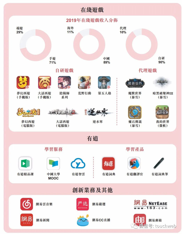 网易从中文门户网站、媒体及电子邮件服务起家,发展成全球领先的游戏开发和运营商,2006年推出的有道业务,已成为在纽交所上市的智能学习平台;
