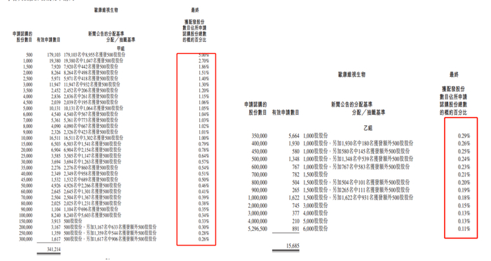 通常,港新股公开发售一般占所有发行股份的10%,公开发售有大小户之分,我们可以将小户理解为甲组,大户理解为乙组。