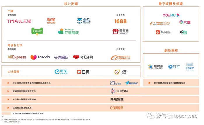 财报显示,阿里巴巴集团旗下有4大业务板块,分别为核心商业、云计算、数字媒体及娱乐,及创新业务及其他。