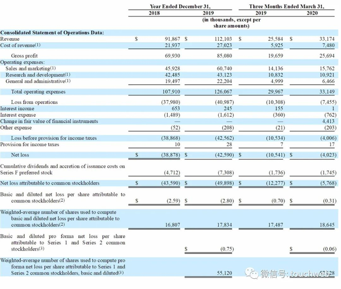 BigCommerce在2018年、2019年净亏损分别为3888万美元、4259万美元;BigCommerce在2020年第一季度净亏损为402万美元,上年同期净亏损为1054万美元。