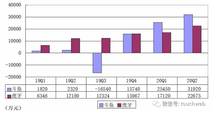 虎牙2020年第二季度的运营利润为2亿元,斗鱼的运营利润则为2.38亿元,要高于虎牙。