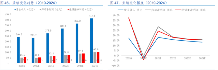 根据华金证券的预测,2020 年公司归母净利润为 49.0 亿元,同比下降 0.9%,经调整净利润为 52.3 亿元,同比减少 4.5%。 2021 年,预计公司归母净利润、经调整净利润分别为 63.1、65.0 亿元,同比增长 28.7%、 24.3%。至 2025,公司归母净利润、经调整归母净利润将分别逐步增长至 100.1、102.8 亿元。