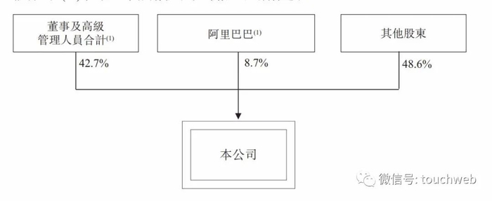 中通快递此次给港交所递交的文件显示,截至IPO前,阿里巴巴持股为8.7%,中通快递董事及高级人员一共持股为42.7%。