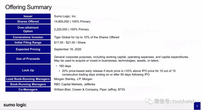 日志管理分析平台Sumo Logic(股票代码为:“SUMO”)昨日在美国纳斯达克上市,发行1480万股,发行价为22美元。