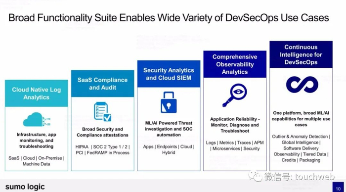 Sumo Logic功是能监测企业计算机产生的海量数据,辅助企业对数据日志进行管理和分析,将分析结果应用到安全性威胁检测、辅助理解事件等。