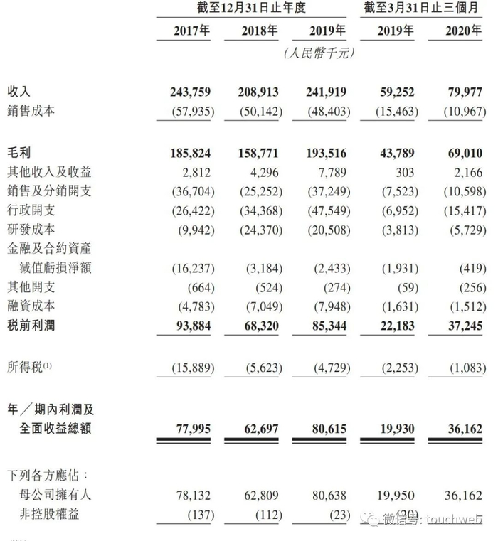 福禄控股2017年、2018年、2019年期内利润分别为7799.5万、6269.7万、8061.5万元;2020年第一季度营收3616万,较上年同期增长81.44%。