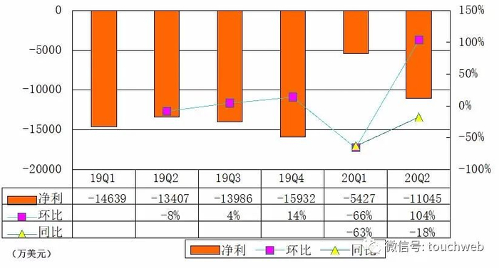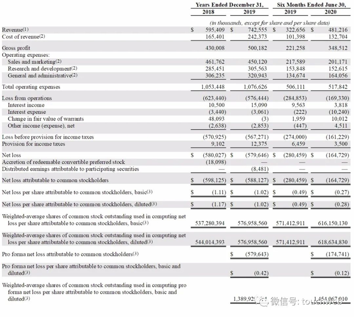 Palantir在2018年、2019年净亏损分别为5.8亿美元、5.796亿美元;Palantir在2020年上半年净亏损为1.647亿美元,上年同期运营亏损为2.8亿美元。