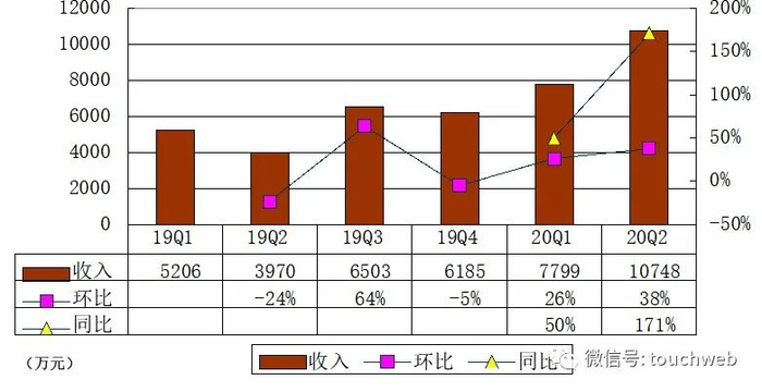 洪恩教育2020年第二季度营收为1.07亿元,较上年同期的3970万元增长171%,较上一季度的7799万元增长38%。