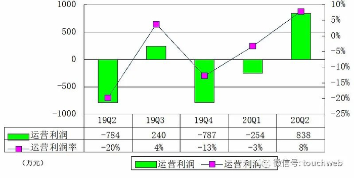 洪恩教育2020年第二季运营利润838万元,上一季度运营亏损254万元,上年同期运营亏损为784万元。洪恩教育2020年第二季运营利润率为8%。