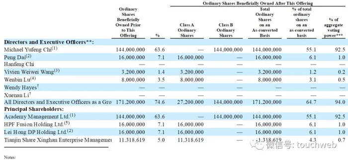 王巍巍持股为1.2%,有0.2%投票权;鲁文斌持股3.1%,有0.5%的投票权。