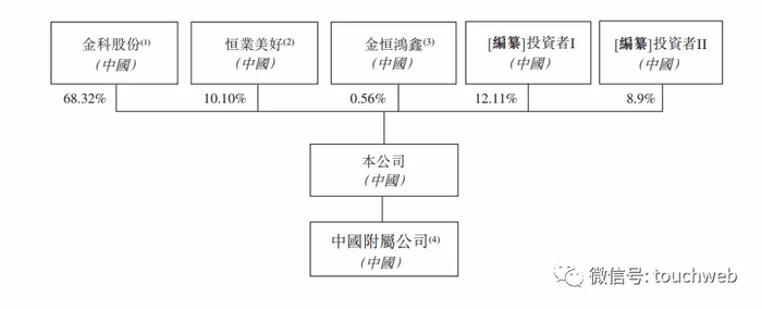 IPO前,金科股份持股为68.32%,恒业美好持股为10.1%,金恒鸿鑫持股为0.56%,第一轮投资者持股为12.11%,第二轮投资者持股为8.9%。