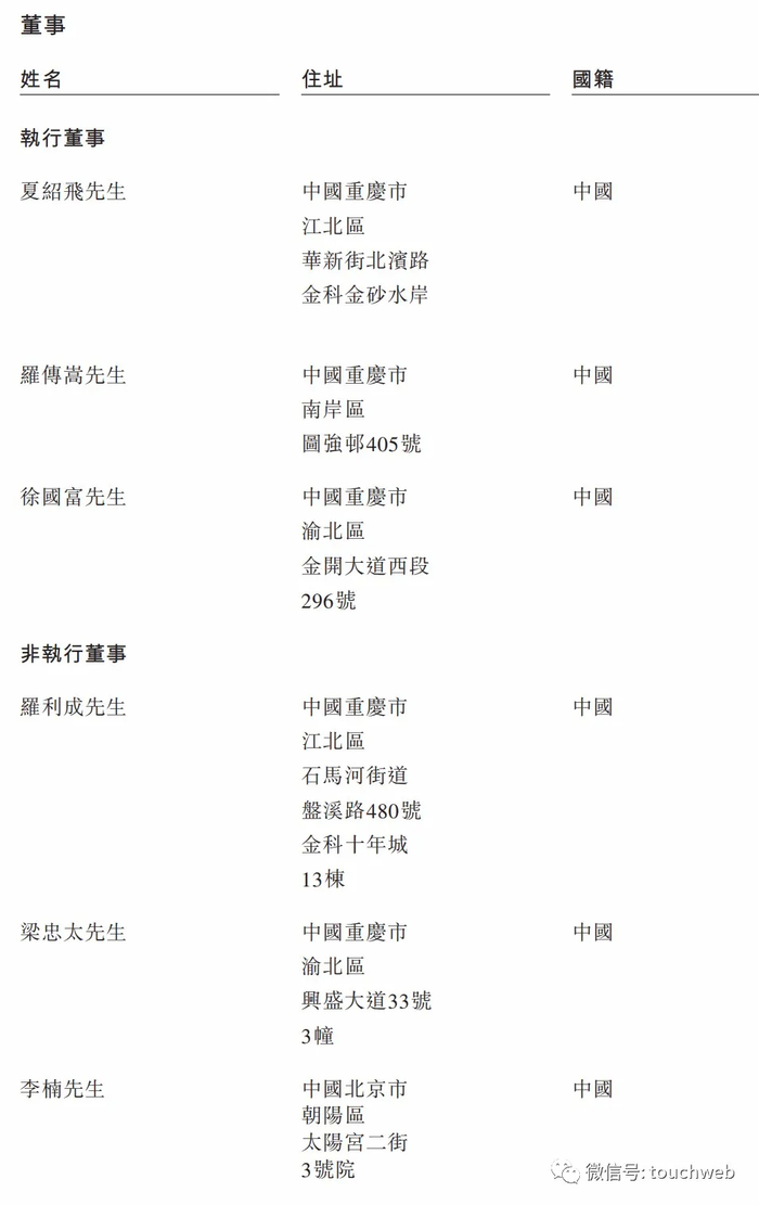 金科智慧的执行董事为夏绍飞、罗传嵩、徐国富;非执行董事为罗利成、梁忠太、李楠;独立非执行董事为曹国华、袁林、陈志峰。