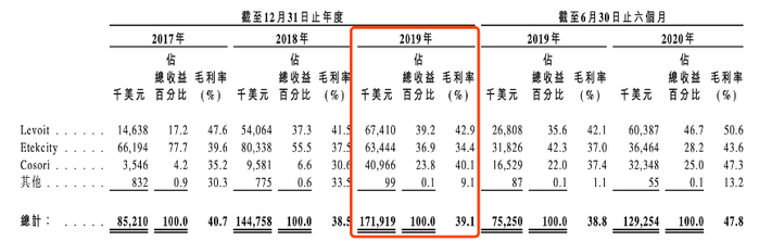 2017-2019财年,VESYNC营业收入从8521万美元迅速增长至1.71亿美元,期间年复合增速高达41.83%;毛利润从3469万美元增长至6723万美元,年复合增长率达到39.21%。