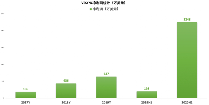VESYNC的净利润在2020上半年经历爆发性增长。