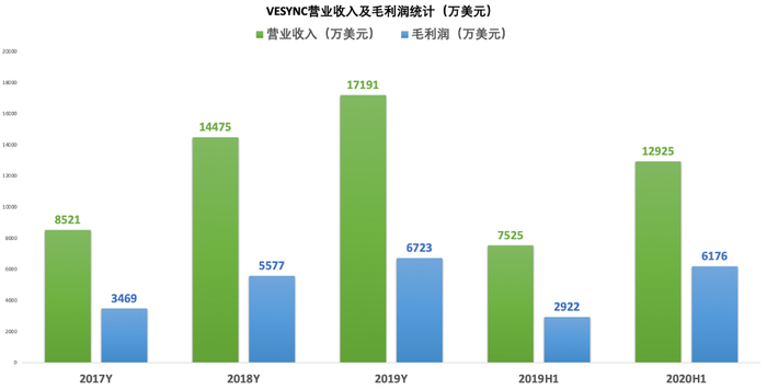2020年上半年,VESYNC营业收入同比增长高达71.76%,毛利润同比增长高达111.36%。