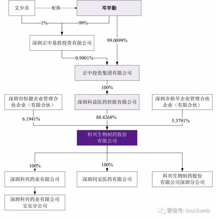 IPO前,科兴制药实际控制人邓学勤控制88.43%股份,深圳恒健持股为6.19%,深圳裕早持股为5.38%;