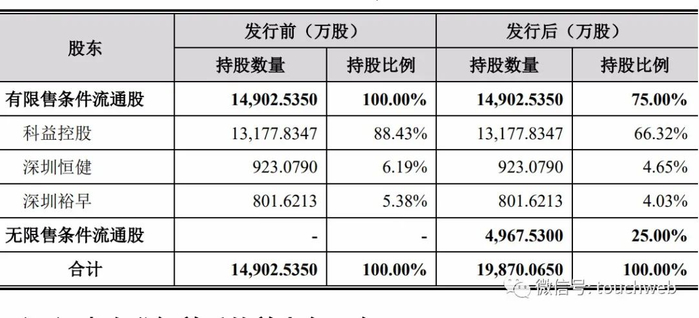 IPO后,邓学勤持股66.32%,深圳恒健持股4.65%,深圳裕早持股为4.03%。