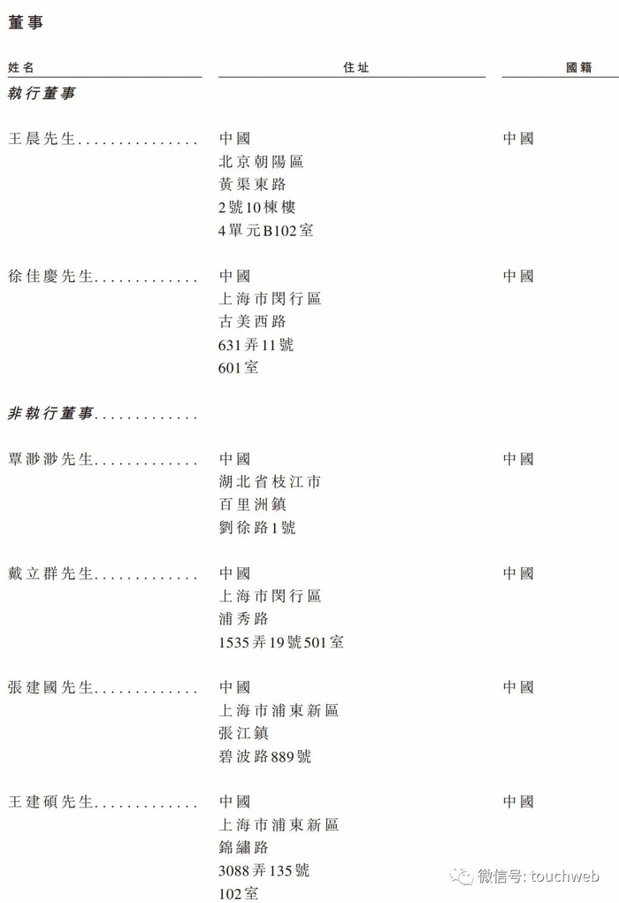 IPO前,王晨持股为18.97%,徐佳庆持股16%,覃渺渺持股5.26%,茹良持股4%;
