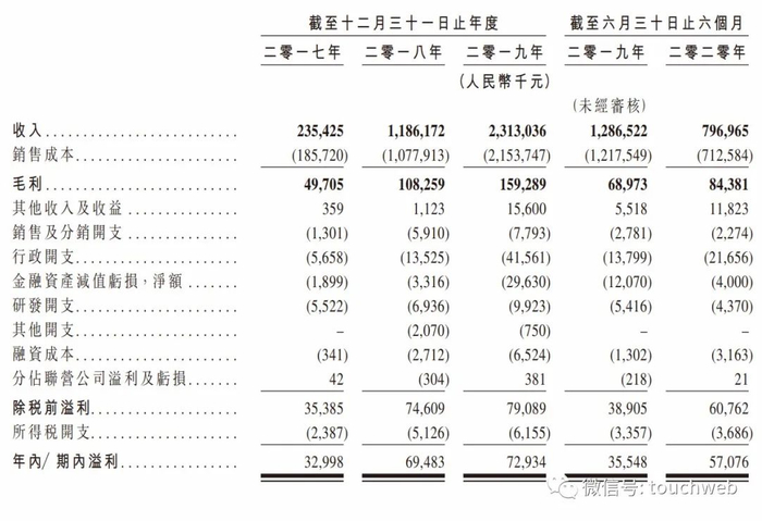 招股书显示,云想科技2017年、2018年、2019年营收分别为2.35亿元、11.86亿元、23.13亿元;云想科技2020年上半年营收为 7.97亿元。