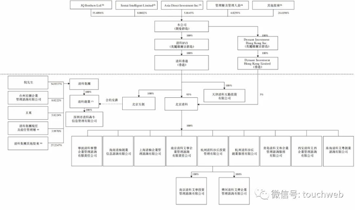 IPO前,倪正东旗下JQ Brothers Ltd持股55.4096%,Sentai Intelligent Limited持股为8.0802%,Asia Direct Investment Inc持股为5.8645%;