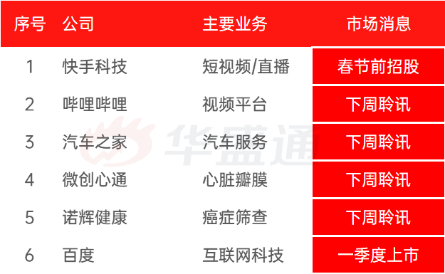 一周IPO动态 | 大事超多!快手有望春节前上市,B站加入中概回归潮