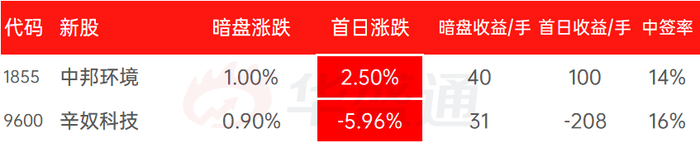 本周仅有2只新股挂牌,新纽科技周二暗盘交易收盘涨0.92%,周三首次挂牌破跌跌5.96%,次日股价拉升创新高,但后续股价再度回落。另一只新股中邦环境周三首日挂牌收涨2.5%,本周最后一个交易日涨超7%。