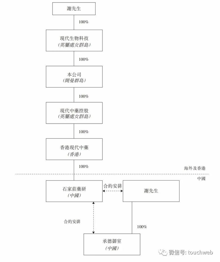 IPO前,谢伟持有现代中药集团100%股权。