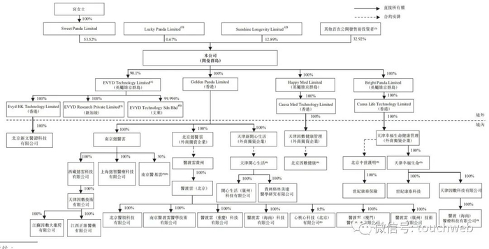 IPO前,宫盈盈持股为53.52%,为大股东,阳光保险全资控股的Sunshine Longevity持股12.89%。腾讯与和玉资本(MSA Capital)也是股东。