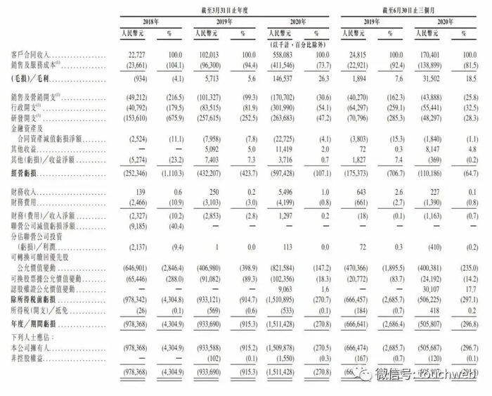 截至每年3月31日,医渡云2018财年、2019财年、2020财年营收分别为2272万元、1.02亿元、5.58亿元;运营亏损分别为2.52亿元、4.32亿元、5.97亿元。