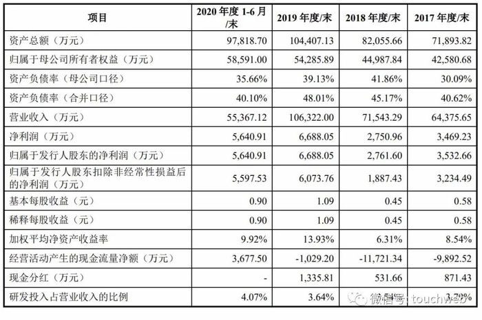 海优新材2017年、2018年、2019年营收分别为6.4亿元、7.15亿元、10.63亿元;海优新材2020年上半年营收为5.5亿元。