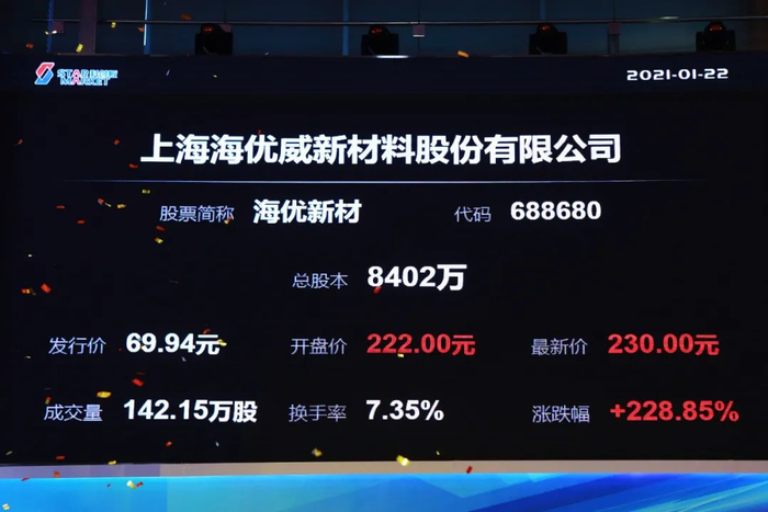 高分子薄膜材料供应商上海海优威新材料股份有限公司(简称:海优新材,证券代码:688680)昨日科创板上市。
