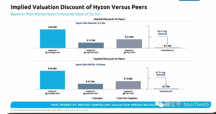 交易后清能股份仍将持有Hyzon Motors 50%以上股权,并仍为其控股股东。以每股PIPE认购价格为10美元计算,假设DCRB的股东进行了最低限度的赎回操作,合并后公司的股权价值为27亿美元。