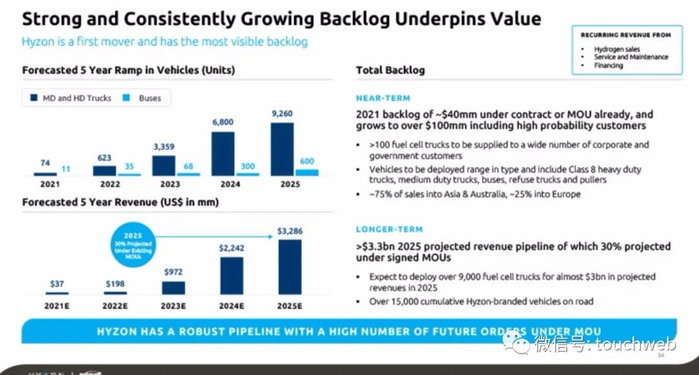 Hyzon还与合资伙伴HolthausenCleanTechnology在荷兰格罗宁根启动了欧洲业务。Hyzon期望通过在北美、欧洲和亚洲的生产设施,在未来三年内交付约5000辆燃料电池卡车和巴士。