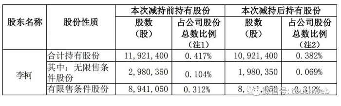 李柯连续3日一共减持100万股,套现2亿元。此次减持后,李柯持股从0.417%下降至0.382%。