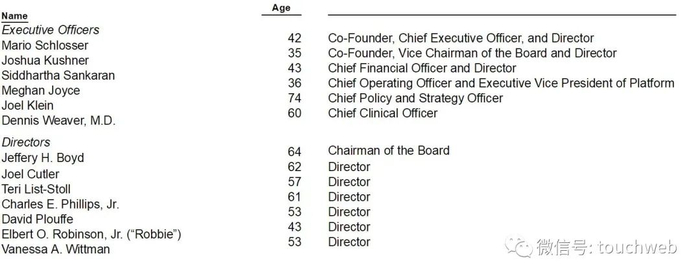 Oscar Health联合创始人包括CEO马里奥-斯洛瑟(Mario Schlosser)、凯文-纳泽米(Kevin Nazemi)和前美国总统特朗普女婿贾里德-库什纳的兄弟约书亚-库什纳(Joshua Kushner)。