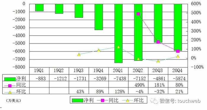 Roblox在2020年第四季度的净亏损为5874万美元,较上一季度的净亏损4861万美元扩大21%,较上年同期的净亏损3269万美元扩大80%。