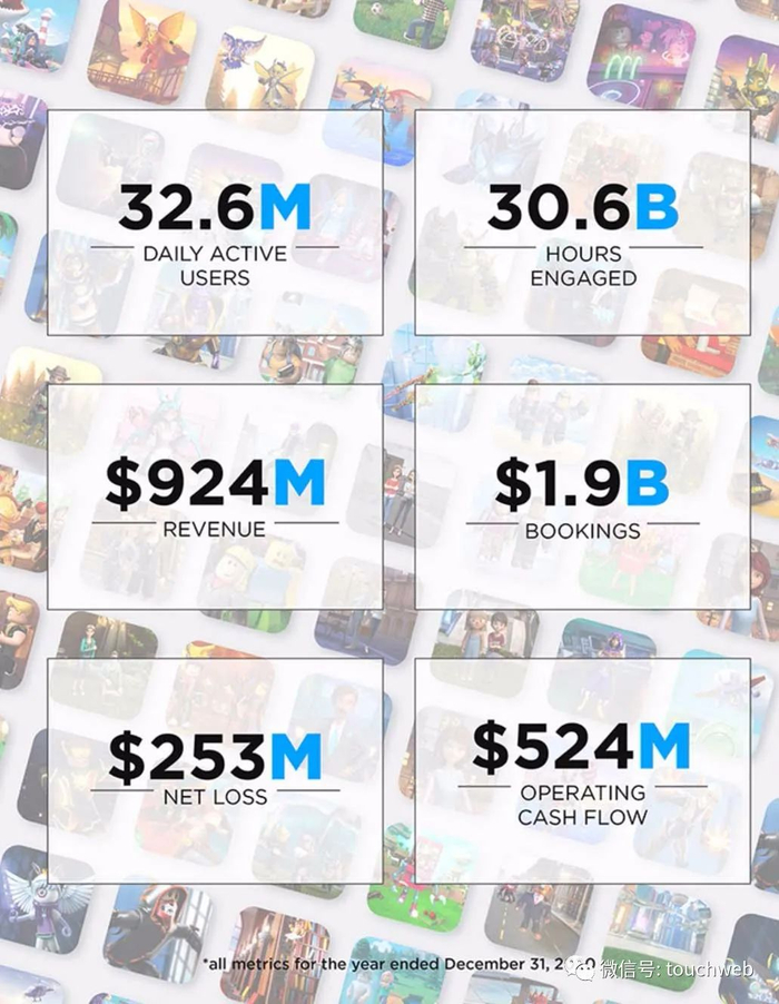 Roblox在2018年、2019年、2020年营收分别为3.25亿美元、5亿美元、9.24亿美元;运营亏损分别为8755万美元、7644万美元、2.66亿美元。
