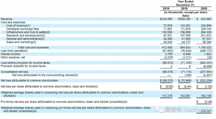 Roblox在2018年、2019年、2020年净亏损分别为8807万美元、7097万美元、2.53亿美元。