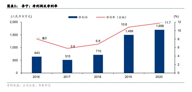 从财报数据来看,4Q20李宁全渠道复苏情况喜人,单季度流水实现10%-20%中段增长,在疫情之下仍然维持了较高增速。