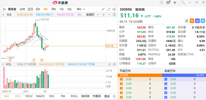 实际上过往医美赛道上涌现的牛股不少,例如2020年登陆创业板的爱美客,这家主业是医用玻尿酸的公司发行价为47.9元人民币,股价上市6个月一度涨至1331元人民币。