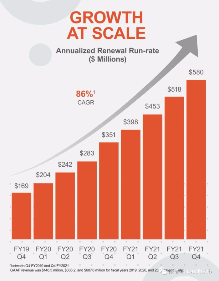 授权收入(Licenses)在UiPath2020财年、2021财年的占比分别为60%、57%;Maintenance and support收入占比分别为36%、38%。