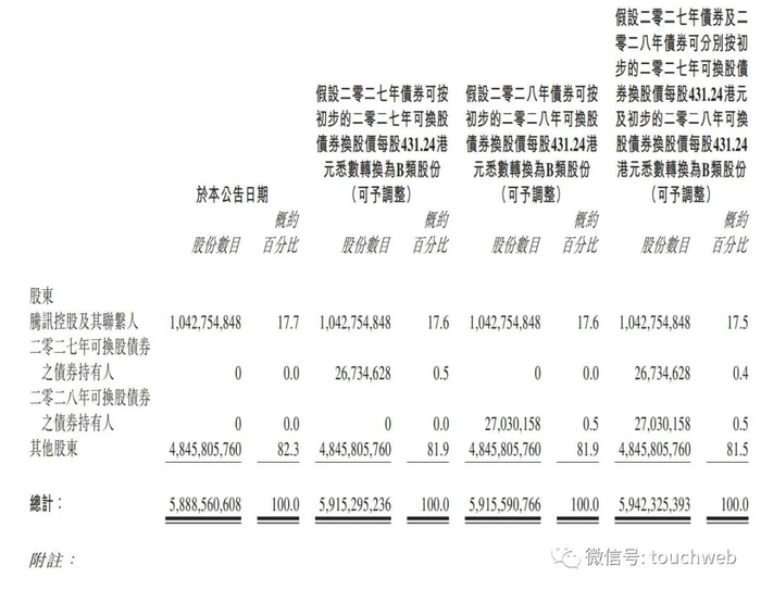 腾讯旗下Limited Investment River持有6.24亿股B类股,占B类股的比例为12.11%。腾讯一共持有美团20.26%的B类股。