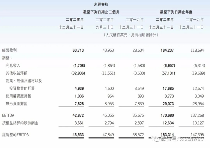 腾讯2020年EBITDA为1706亿元,经调整EBITDA为1833亿元。